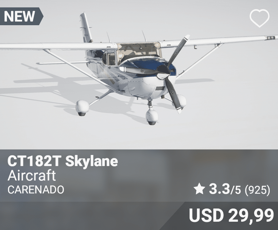 | Piston | Cessna | 182T Skylane | Carenado | Xbox | USD 29,99 |