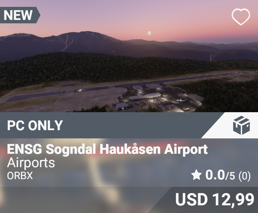 | Local | ENSG | Sogndal Airport, Haukåsen | Norway | Europe | ORBX | PC | USD 12,99 |